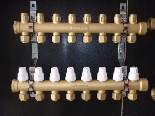 4、 控温优势:既可以手动调节控制每个房间温度,又可以在每个回路上安装上电热执行器并在对应的房间里安装上温控器,从而达到分室恒温控制,舒适、节能、环保。