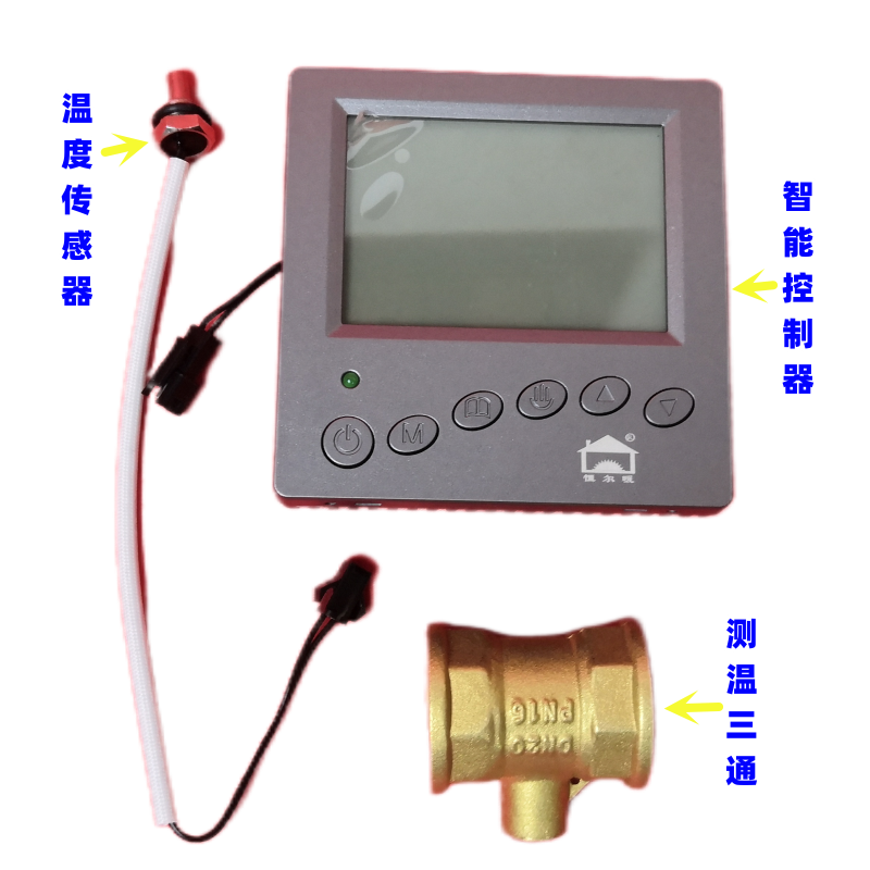 恒尔暖循环泵智能控制套件包括:智能控制器、温度传感器、测温三通三个配件。