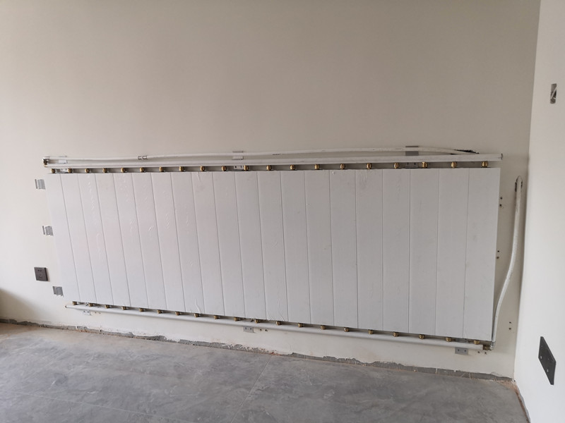 从上面的安装过程照片可以看出,超薄护墙装饰板暖气片和传统暖气片的结构是一样的,也是由上下主管和中间的散热片组装,只不过每片之间拼接在一起,没有明显的缝隙,整体看就是一块护墙板。