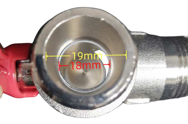 市场上6分的球阀式角阀的阀芯内直径从10-15mm的都有,声称全通径、大流量球阀式(或球芯)角阀参差不齐,一般内径也只有12-14mm, 超过14mm的很少,但真正全通径大流量的阀芯内径应该是十分接近阀体外丝端内径的,本公司生产的球阀阀芯内直径高达16.5-18mm,目前市场上我们还没有发现阀芯内直径比我们大的。