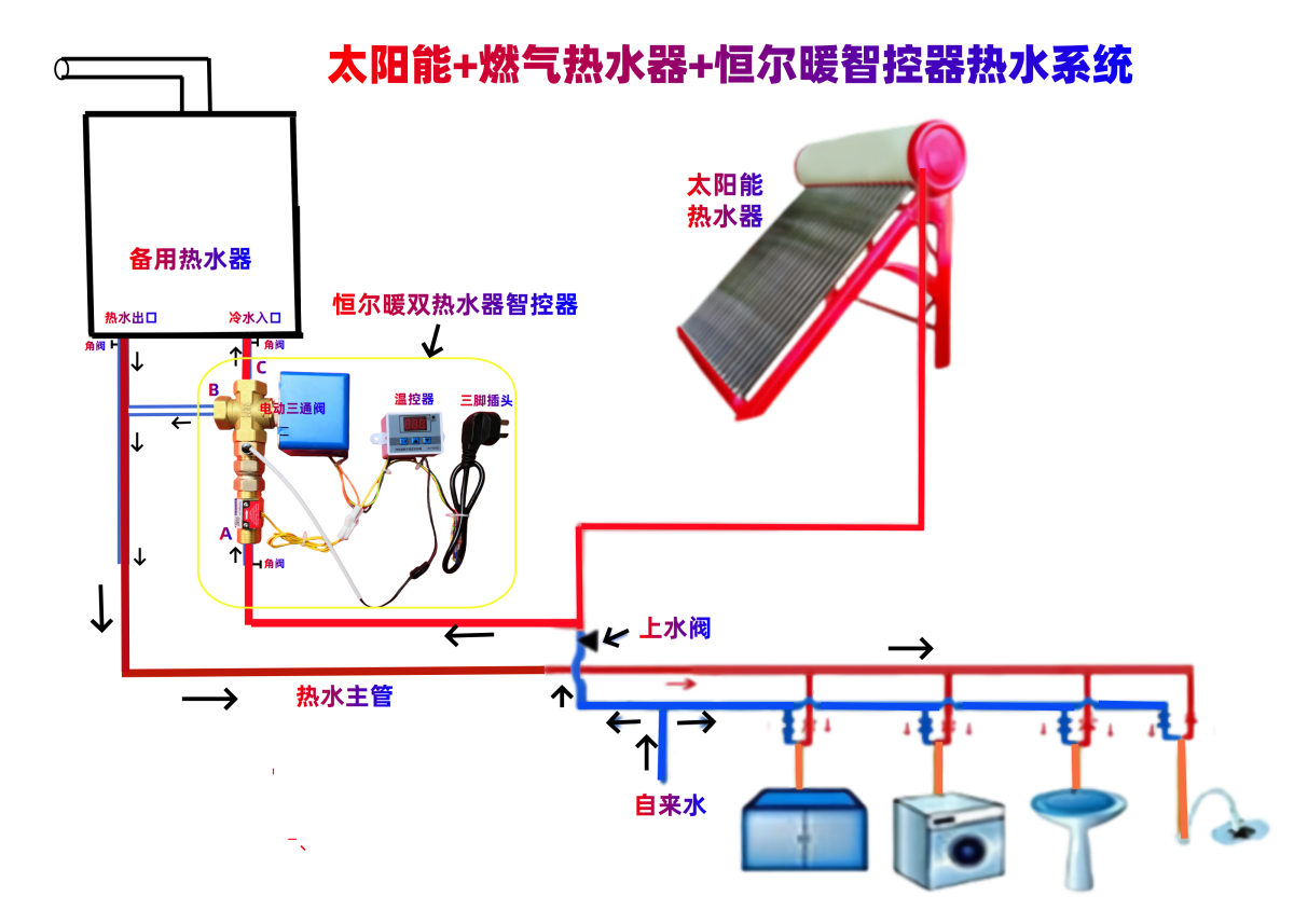 不管你家是太阳能热水器搭配燃气热水器,还是空气能热水器搭配即热式电热水器,恒尔暖双热水器智控器都能完美适配。一般把太阳能、空气能这种储水式节能热水器当作主用,把燃气热水器、即热式电热水器这种快速加热的当作备用,这样的组合,既节能又高效。
