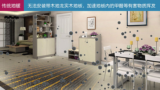 第十、使人得白血病的几率增大。在地表面覆盖材料是强化地板和实木复合地板时,地暖从下面向上加热,会加速地板里面的甲醛和苯等有害物质向室内释放,再加上冬天供暖不通风,人长期生活在这个空间里,有可能会得可怕的白血病等不治之症。即使是符合环保要求的强化地暖和实木复合地板,在这种地暖从下面加热的情况下,室内甲醛的浓度也会变的很高,变得不环保了,也许有的人会辩解说那是你地板不环保与我地暖没有关系,这和“在加油站抽烟导致爆炸却诡辩说是是人家加油站空气中散发的汽油浓度高与我抽烟有什么关系”有什么区别?