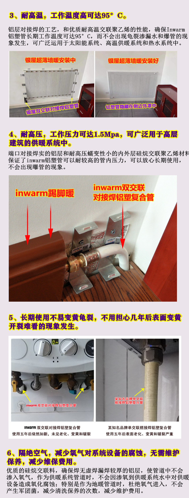 inwarm铝塑管,耐高温高压耐老化不开裂不变黄高温散热器供暖管道,高端地暖管和太阳能管,双交联对接焊铝塑复合管