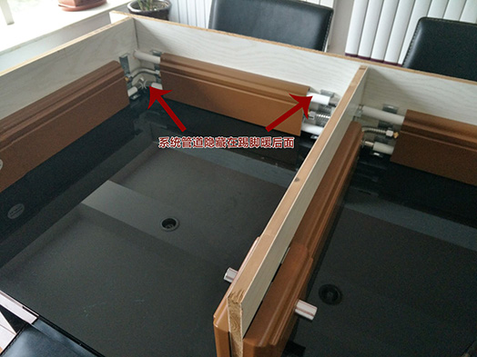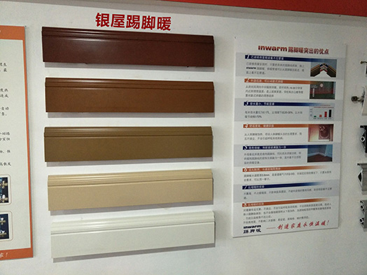 这张照片是展厅实际安装的效果,看起来很高档漂亮,和锅炉连接了起来,测试效果就是靠展厅一圈实际安装的这些踢脚暖。