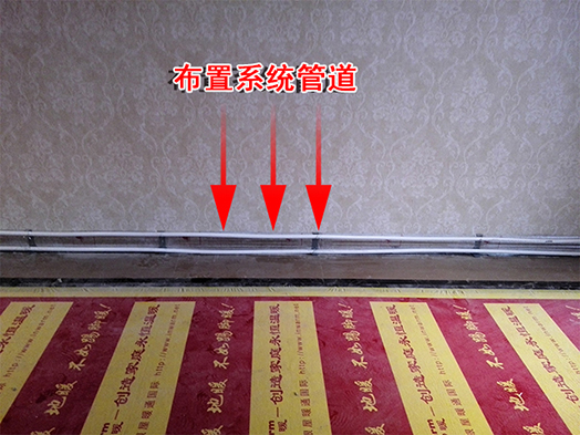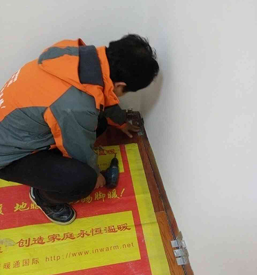 第十二步,系统试用行。安装好后,师傅们开启锅炉,然后一个一个房间调试,很快每个房间的踢脚暖都热了,只要热水到哪个房间,踢脚暖表面摸着迅速就热了,真是太快了。在试运行期间,师傅们还是每个接头进行检查,确保没有任何渗漏水地方。