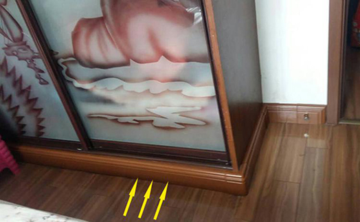 新房毛坯房安装踢脚线暖气片遇到柜子时,预先定制柜子时将柜门抬高13cm,将踢脚线暖气片之间安装在柜子前面。