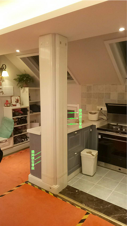 在房间墙面少,沿着踢脚线安装的踢脚线暖气片长度少,散热量不够的情况下,也可以像这样沿着柱子竖着安装几根进行散热补充。