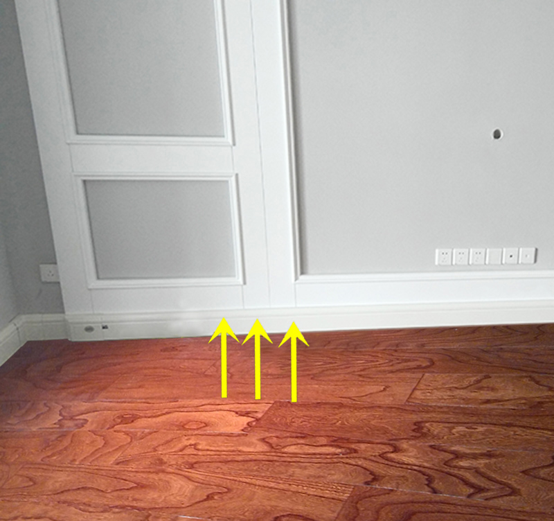 和他们说,真是后悔当初装修时没有看到这个东西,现在看样子是装不了。他们说,听专卖店介绍说,他们这个银屋踢脚暖不仅毛坯房可以安装,而且装修好的房子也可以装,并且还看不见管道。我很惊奇,地面又动不了,不能从地面开槽,怎么装呢?