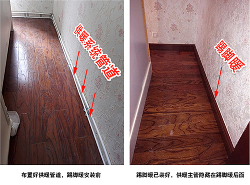 (地暖抬高地面和踢脚暖对比图)