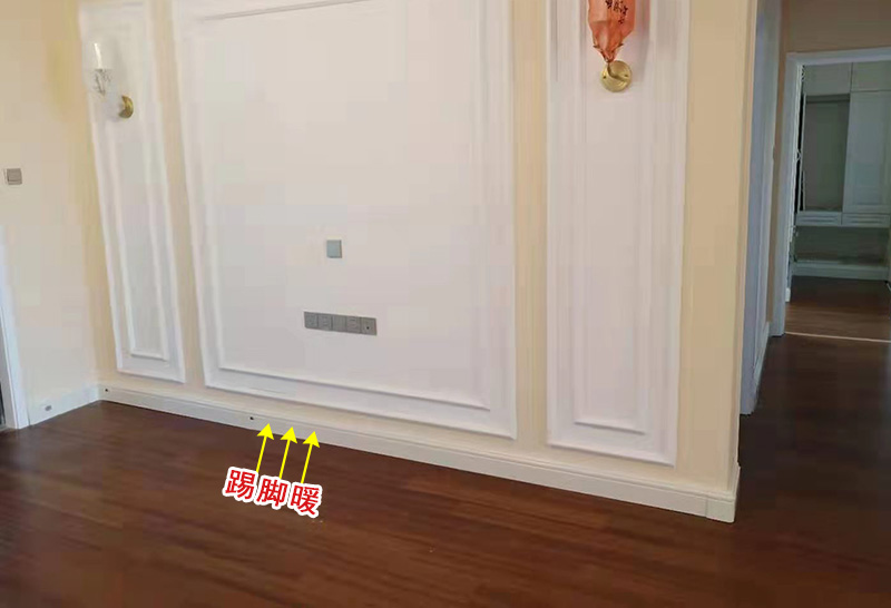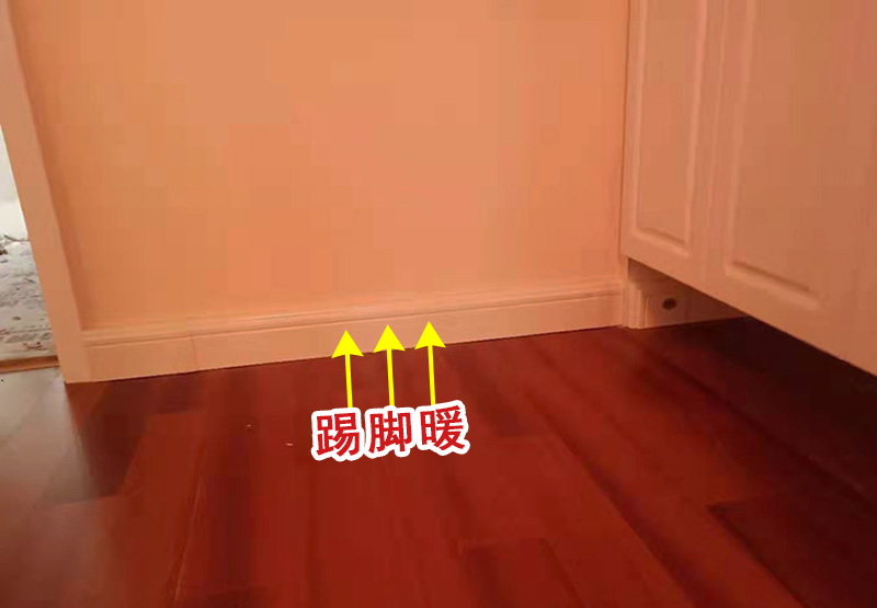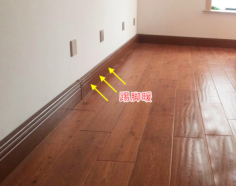 在过去,水暖供暖方式只有暖气片和地暖两种方式可供大家选择,这几年又出来一种新型供暖方式:踢脚暖,踢脚暖外观看起来是实木踢脚线,但后面隐藏的有供暖水道和翅片,三者一体挤压成型,供暖时热水从水道流动,热量通过水道传递给翅片然后传递给面板,然后面板从房间的四周向中间以热辐射的方式散热,使人体脚部迅速感觉到温暖,从人体的脚部加热,脚暖头凉舒适度高,升温十分迅速,10-20分钟就可以达到理想温度,踢脚暖把供暖和踢脚线的装饰功能有机的融为一体,不熏墙,不占据墙面,不抬高地面,几乎将暖气片和地暖的缺点都去除掉了,是目前十分理想的供暖方式,它最大的优点是节能,比暖气片节能20-30%,比地暖节能60-70%。