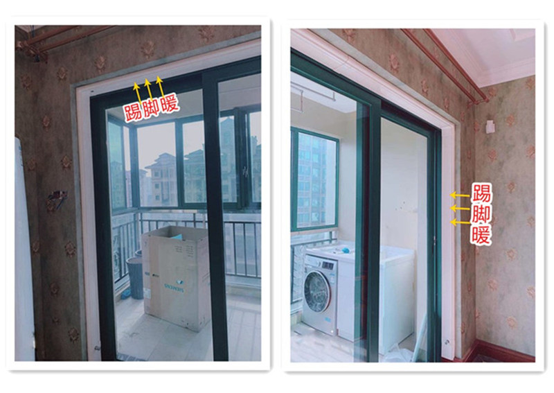 (踢脚暖沿着移门框内侧安装,供暖管道隐藏在踢脚暖后面过门)