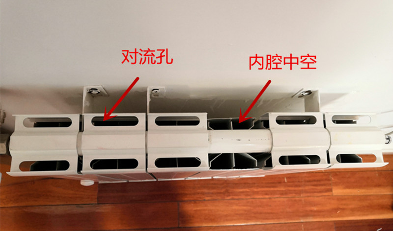 散热器一般每片内部和片与片之间都是空的,而且上下帽盖上也预留了对流孔,按照散热器的国家安装规范,散热器安装时靠近墙面的面板要与墙面之间保持5cm以上的空隙,而且下面距离地面不得少于12cm,这个规定的目的就是为了增强散热器供暖时的对流效果。这样在散热器的前面、内部和与墙面之间就形成了对流通道,我们知道热空气的密度小,会上浮,因此,供暖时,较冷空气从周围过来进入散热器前面、内腔和与墙面之间的空隙后,被加热,然后向上流动,这样空气从散热器的下面向上流动,形成烟囱效应,如果家里卫生搞得不是十分干净,灰尘会不断随着空气对流被吸附在散热器上面的墙面上,时间久了之后就是我们看到的墙面被熏黑的效果。