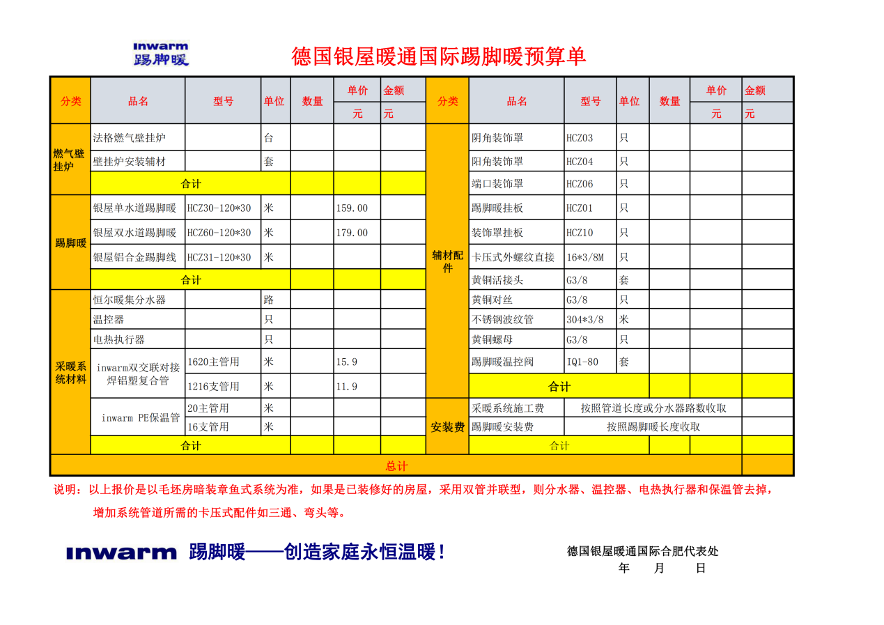 (银屋踢脚暖取暖器水暖系统预算单)
