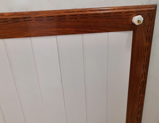 传统采暖散热器要在工厂里生产成型,现场安装时无法进行增加或减少,如果安装墙面长度不够,根本就无法进行安装;而银屋墙围装饰板暖气的散热片每支长度2.4米,可以在现场根据需要切割成任意高度,而且可以根据墙面长度和供暖散热量的需要,在现场拼装任意长度,可以局部安装,也可以像实木墙围一样安装房间一圈。