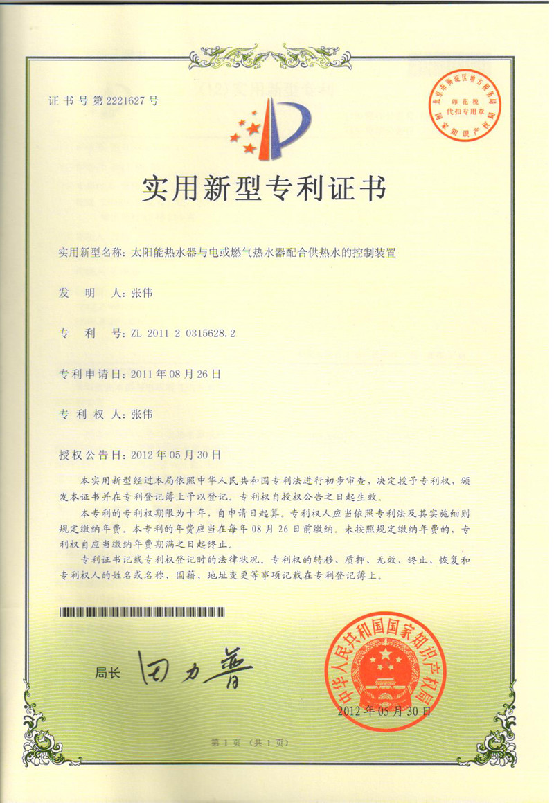 这种太阳能+快速热水器自控中心的发明,使用户既能享用到免费的太阳能热水,又能在水温不够时智能切换进行二次加热,而且还具有热水循环功能、防冻功能和防抱死功能,智能定时定温控制,并且大大延长快速热水器的使用寿命,真是很不错的发明创造。