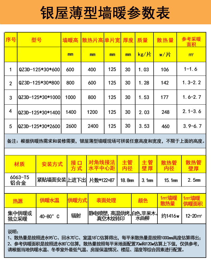 (银屋装饰护墙板暖气片参数表)