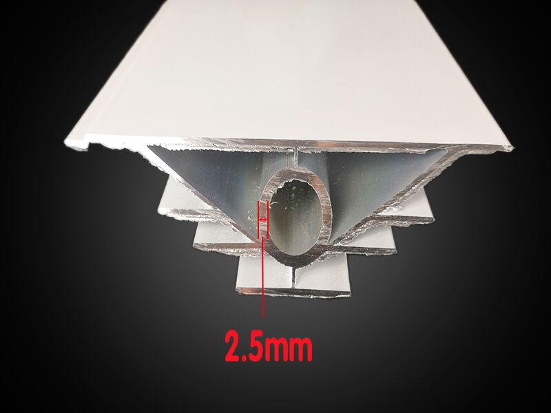 银屋超薄水墙暖采用优质6063-T5铝合金一体挤压成型,散热片水道壁厚2.5mm,主管水道壁厚3-7mm,散热管和主管之间采用HPB58-3精铜配件连接,没有任何脆弱的焊接,经久耐用,在水质家庭独立采暖系统和水质符合铝制散热器要求的集中供暖系统,可以用一辈子。