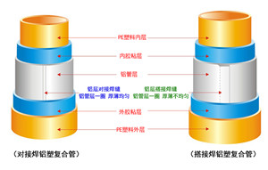 (对接焊铝塑管和搭接焊铝塑管结构对比图)