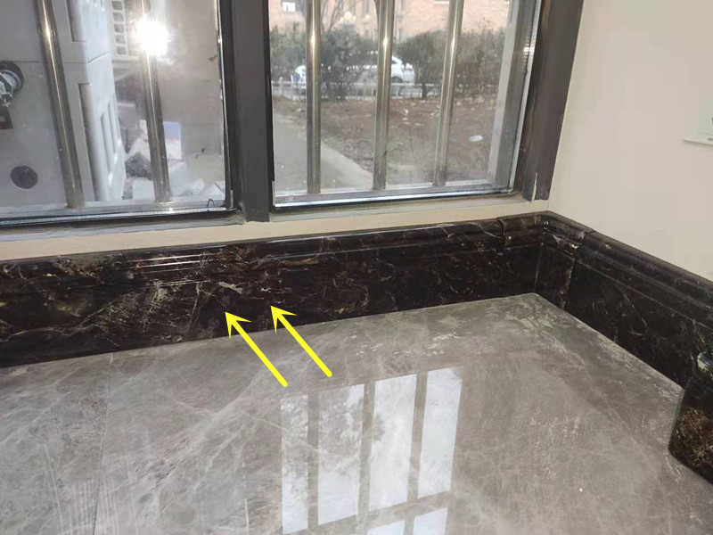 (过道走廊处大理石纹银屋踢脚板水暖安装照片)