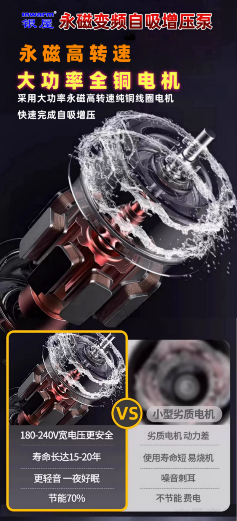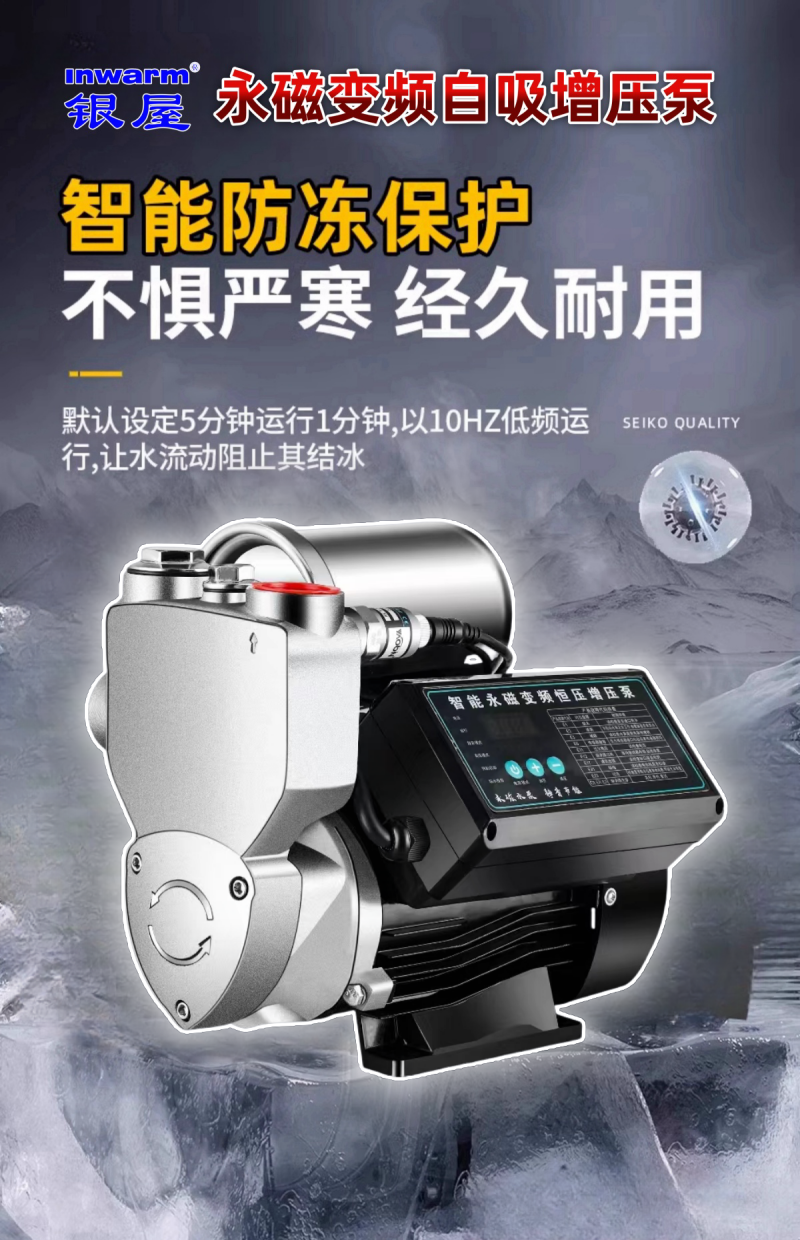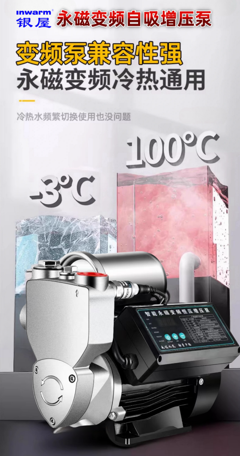 银屋永磁变频自吸增压泵耐温可达110°C,无惧太阳能高温水,冷热水均可放心使用