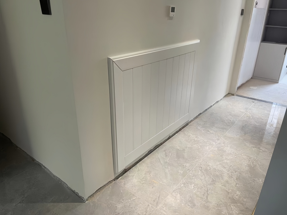 图 4、客厅整面墙安装超薄护墙板暖气片当护墙板使用